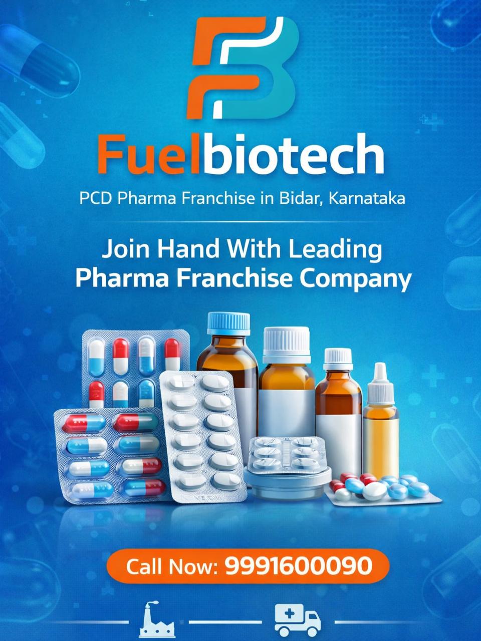 π About Fuelbiotech Fuelbiotech is a leading pharmaceutical company offering high-quality medicines and reliable business opportunities across India. We provide the best PCD Pharma Franchise in Bidar, Karnataka, helping individuals and distributors build a successful pharma business with low investment. Our goal is to deliver affordable healthcare solutions while supporting our partners with strong marketing and product quality.